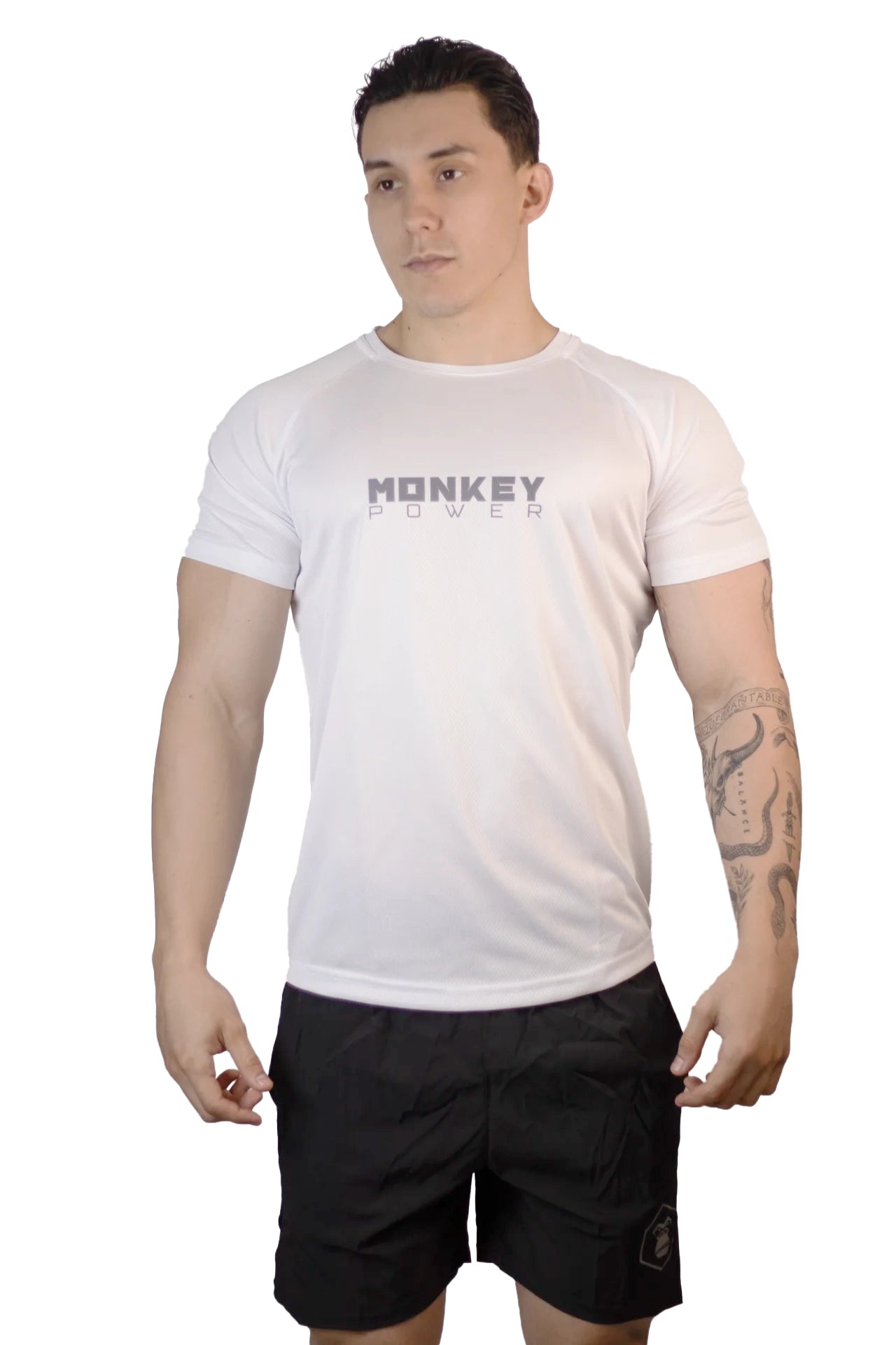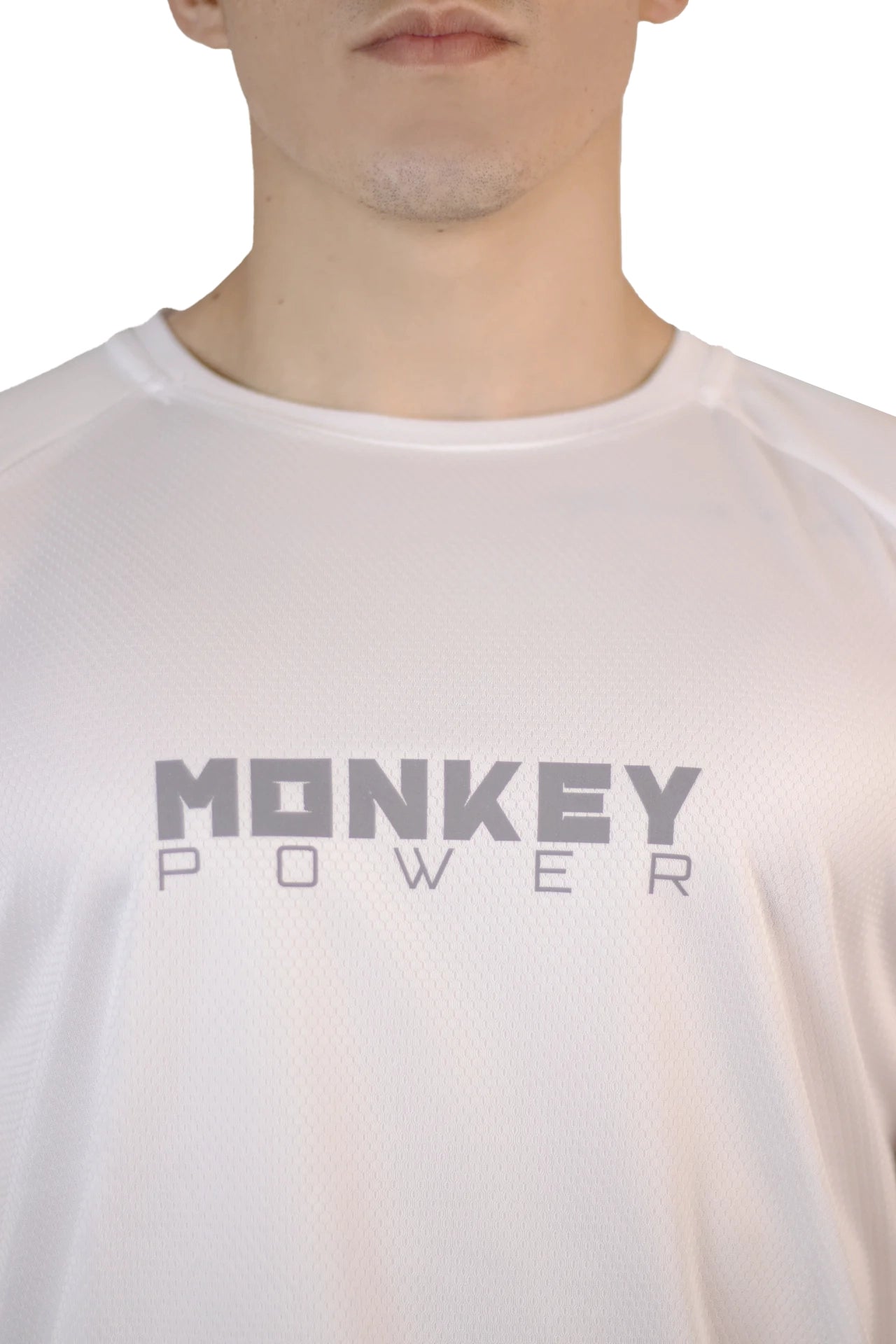Our White Pro-Fitness t-shirt, made with high-quality synthetic materials, is the ideal choice for those looking for comfort and style in their sports routines.
